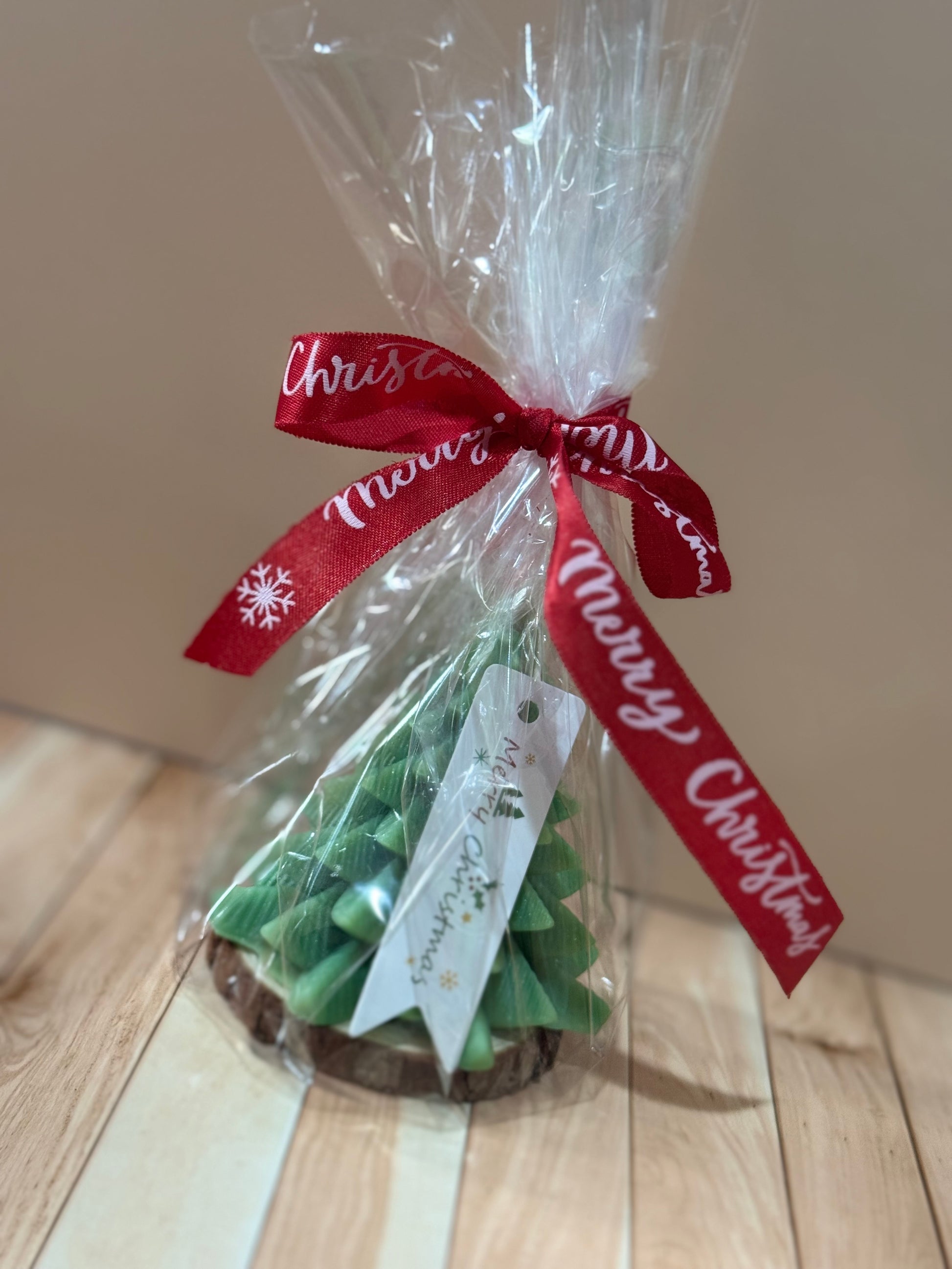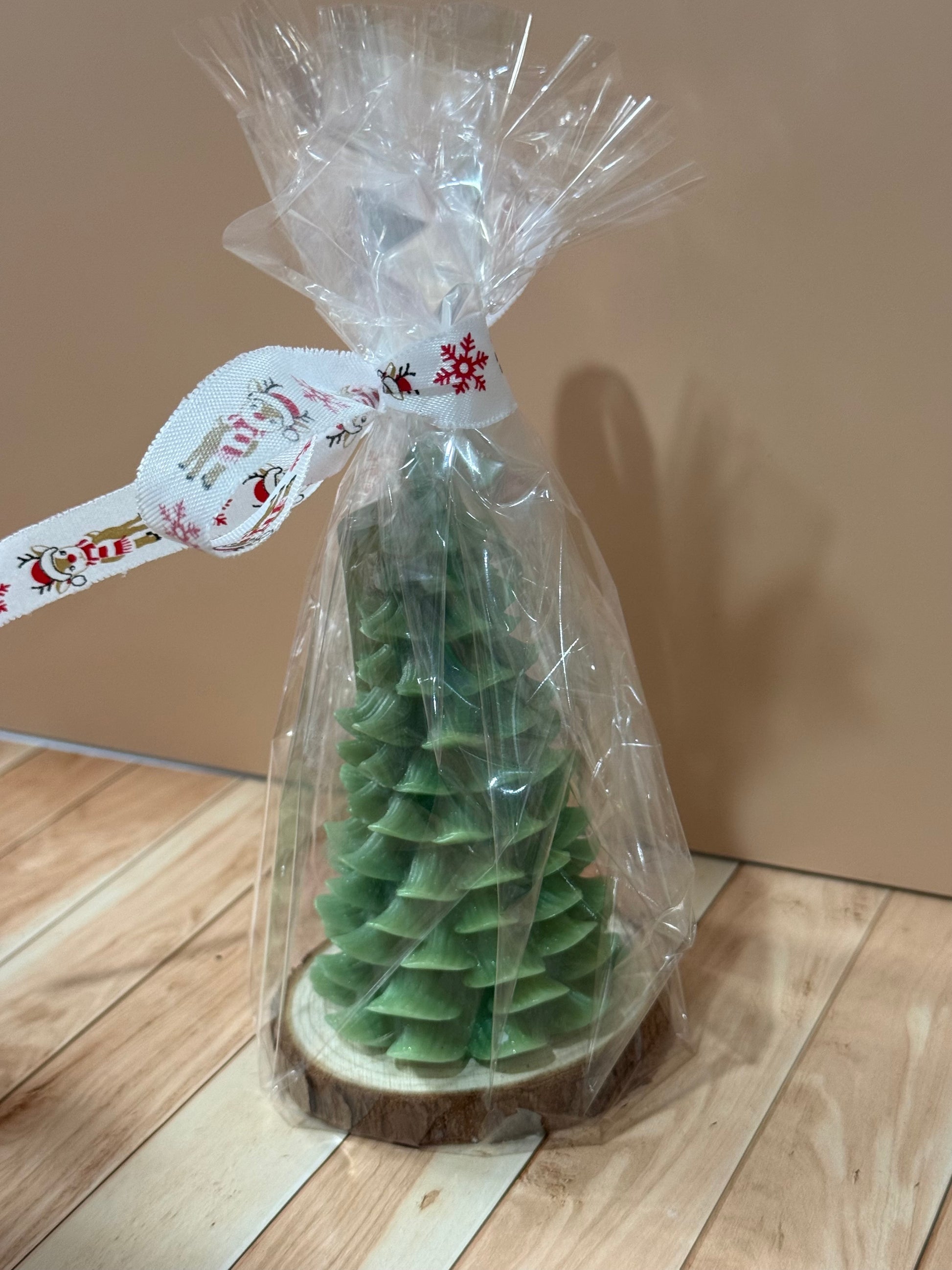 Vela de pino de Navidad. Con su base de madera para una decoración completa a tu hogar